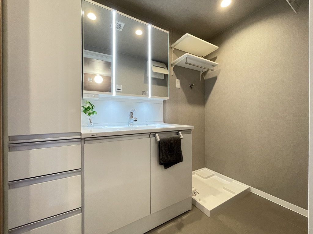 | 設備条件 | 排水下水、水道公営、コンロ口数三口、システムキッチン有、バス・トイレ別有、洗髪洗面化粧台有、オートロック有、エレベータ有、出窓有、フローリング有、バルコニー有、駐輪場有、バイク置き場有、TVドアホン有、カウンターキッチン有、浴室乾燥機有、独立洗面台有、全居室収納有、クローゼット有、シューズボックス有 |