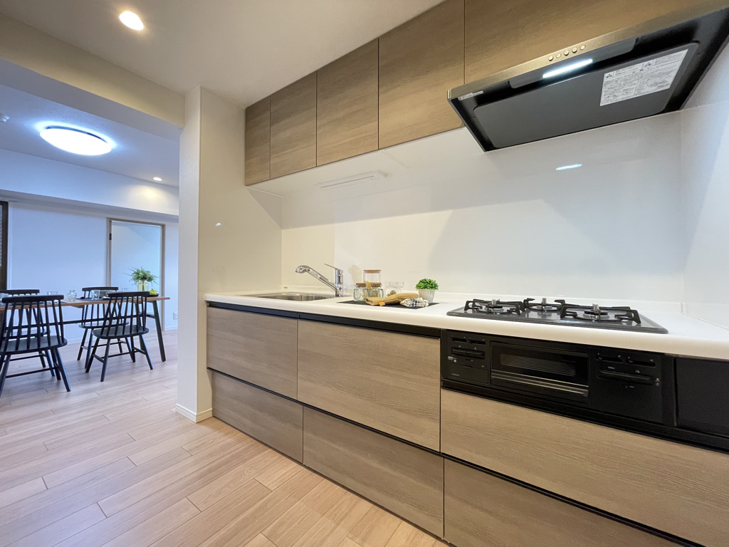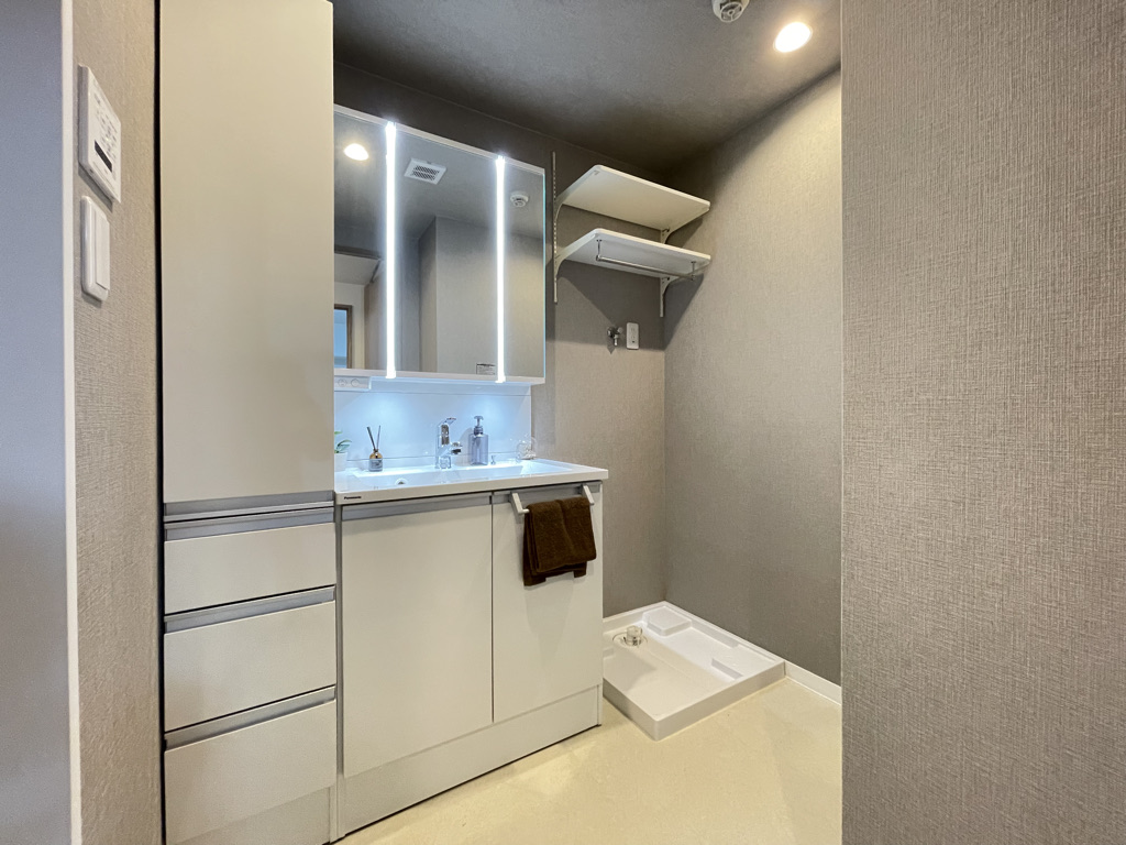 | 設備条件 | 水道公営、ガス都市、排水下水、バス・トイレ別有、シャワー有、コンロ口数三口、システムキッチン有、洗髪洗面化粧台有、エレベータ有、オートロック有、フローリング有、バルコニー有、浴室乾燥機有、独立洗面台有、全居室収納有、クローゼット有、シューズボックス有 |